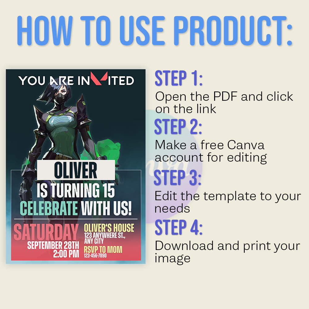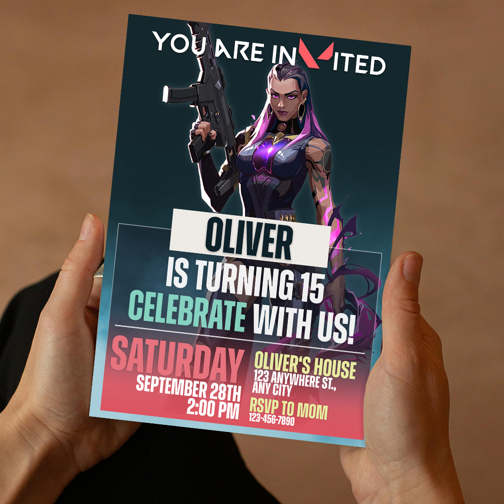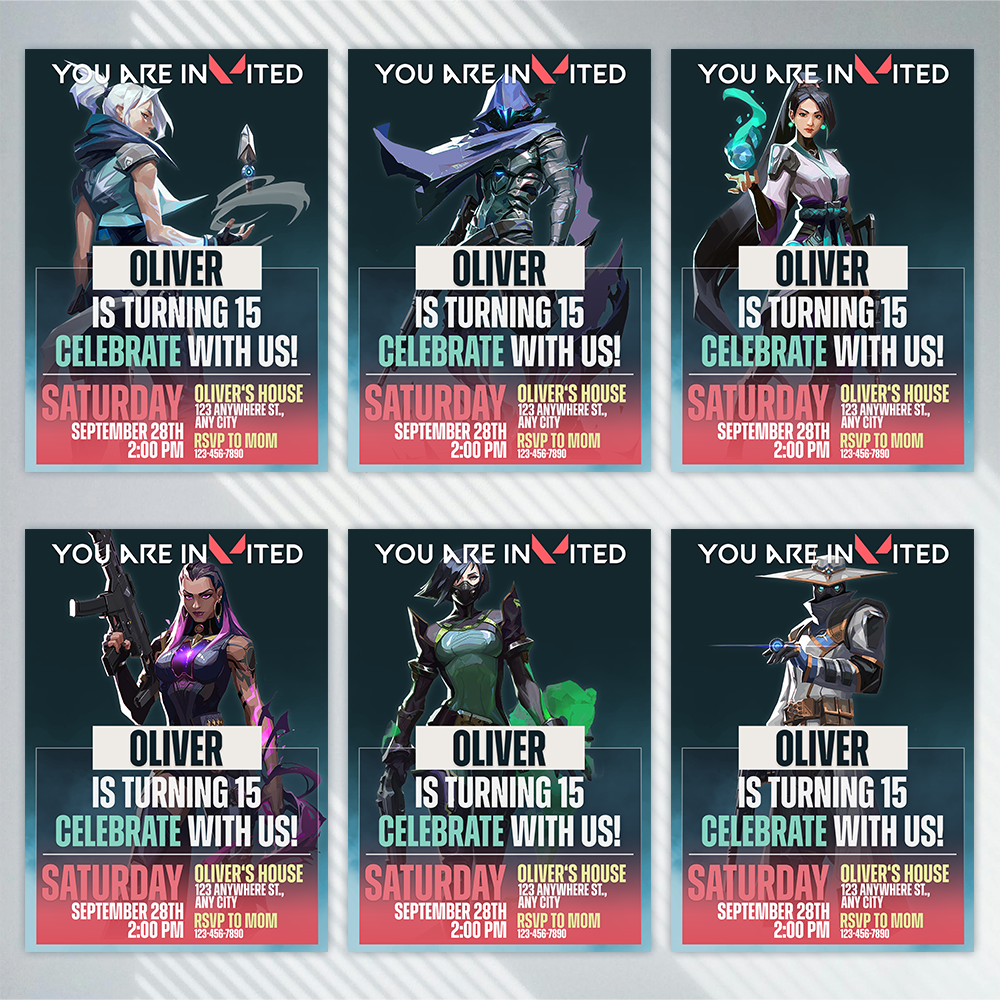 Valorant Birthday Invitation BUNDLE | Editable & Printable Canva Template